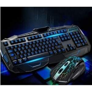 Комплект игровая проводная мышь и клавиатура с подсветкой Atlanfa AT-V100. Игровая клавиатура с мультимедийными клавишами и тремя видами подсветки: красная, синяя, фиолетовая. Подсветка переключается комбинацией клавиш Fn+SL . А также регулируется яркость подсветки и световые эффекты такие как автоматическое изменение цвета подсветки или пульсация. Игровая мышь с многоцветной подсветкой которая работает в автоматическом режиме, то есть меняет цвет самостоятельно.